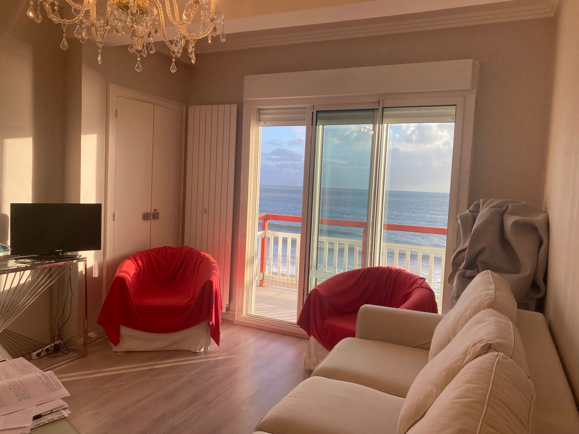 - Pièce de vie ouverte sur terrasse face mer avec store banne (TV écran plat)