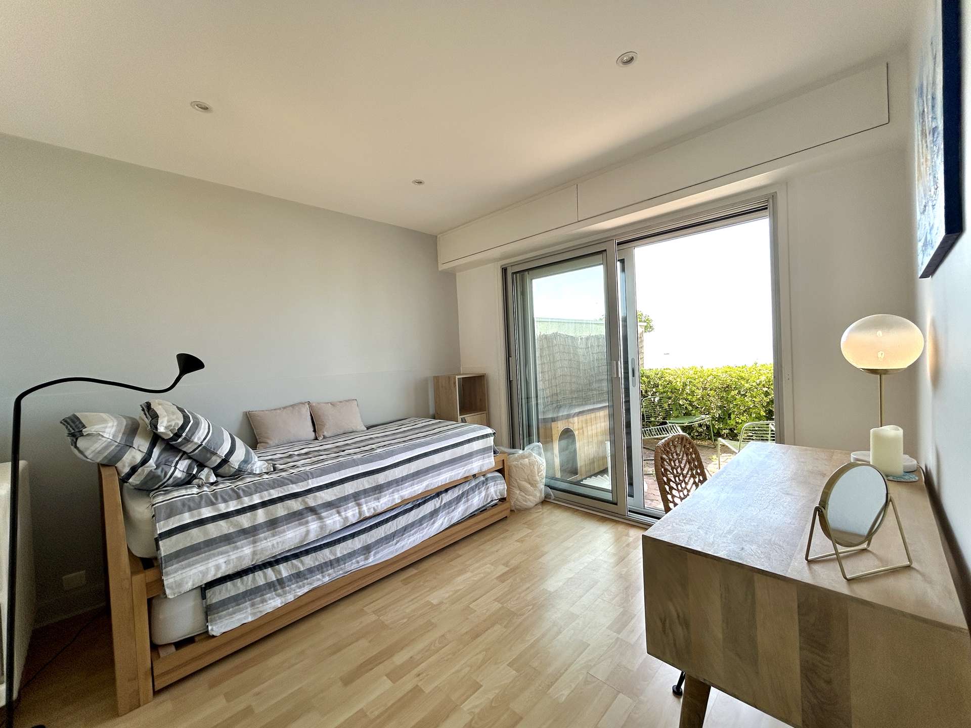 Les plus de cette location à la mer : Idéalement situé, ce charmant trois pièces vous séduira avec sa terrasse face mer vous permettant de prendre vos repas au son des vagues et sa proximité avec les commerces, la plage et les nombreuses activités proposées sur la baie. De quoi profiter pleinement de ses vacances, en couple ou en famille.