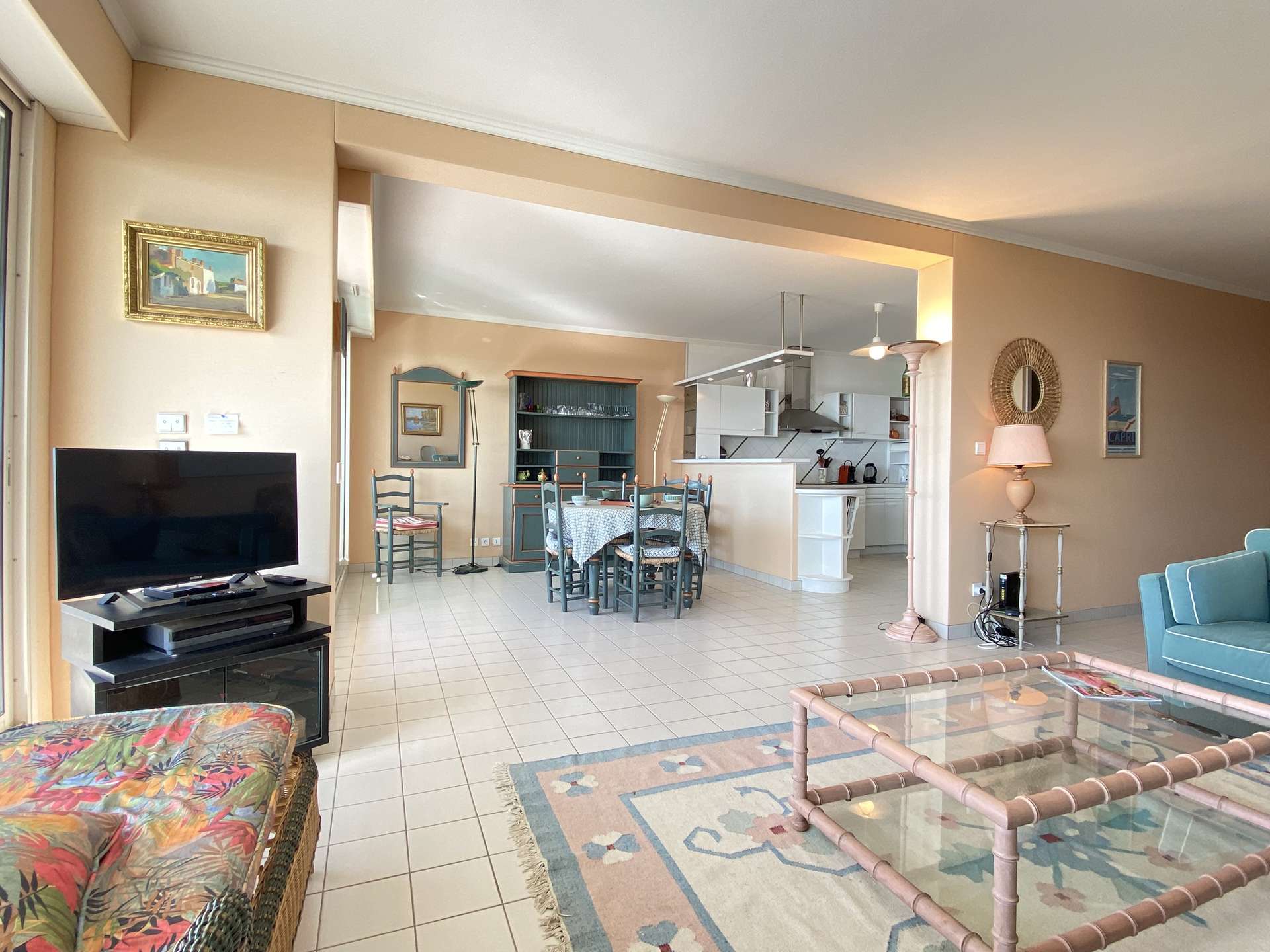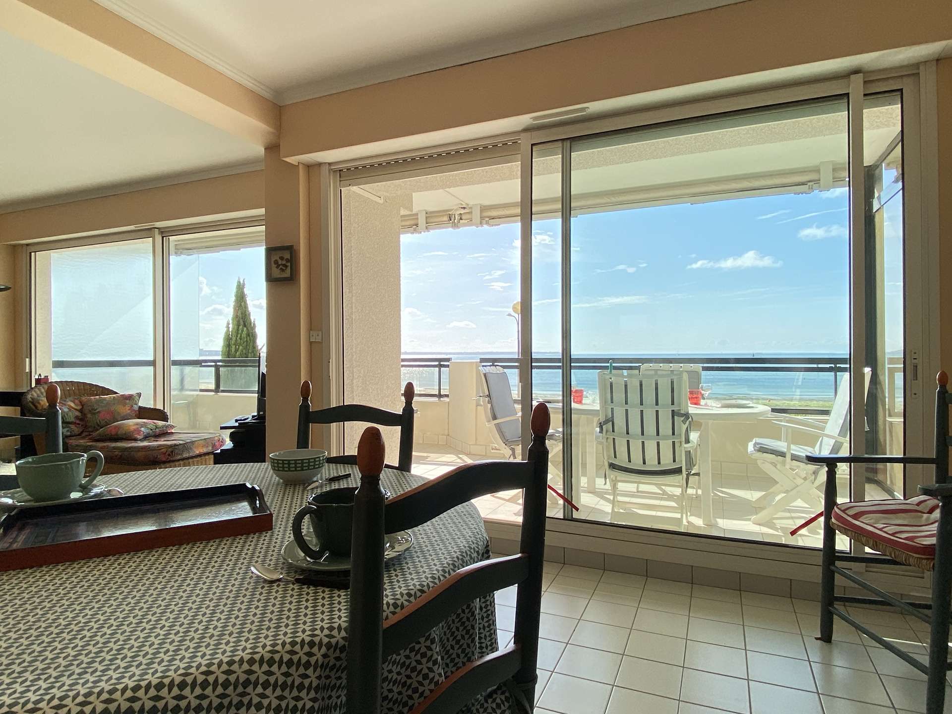 Appartement de type 4 - 1er ETAGE- 107 m2 environ - jusqu'à 6 personnes A deux pas de la plage Benoît, au premier étage d'une résidence de standing, au calme, cet appartement se compose d'une cuisine ouverte aménagée et équipée,de deux salle de bains , d'un wc séparé, de trois chambres, d'un grand salon salle à manger donnant sur une belle terrasse équipée face à la mer