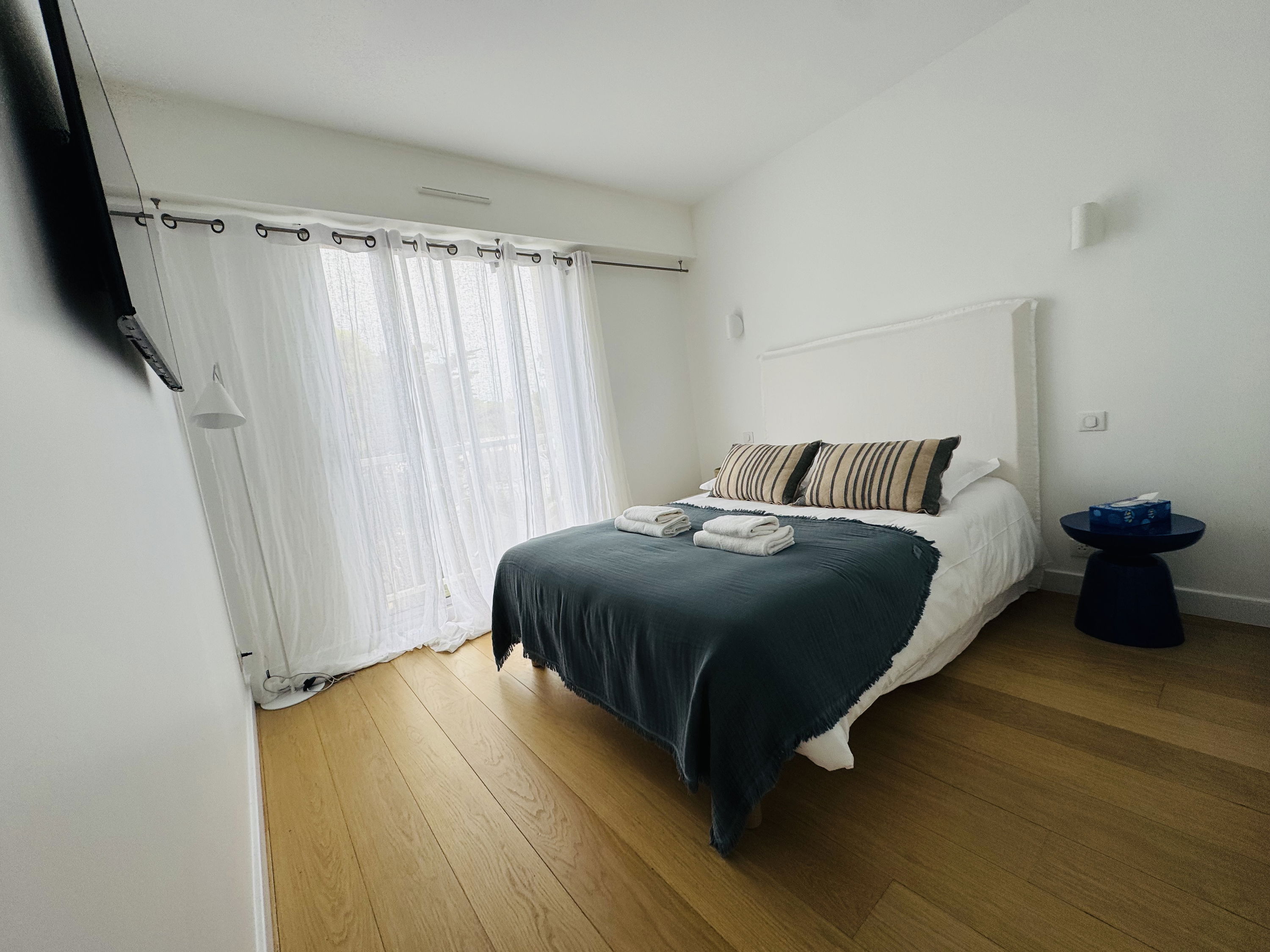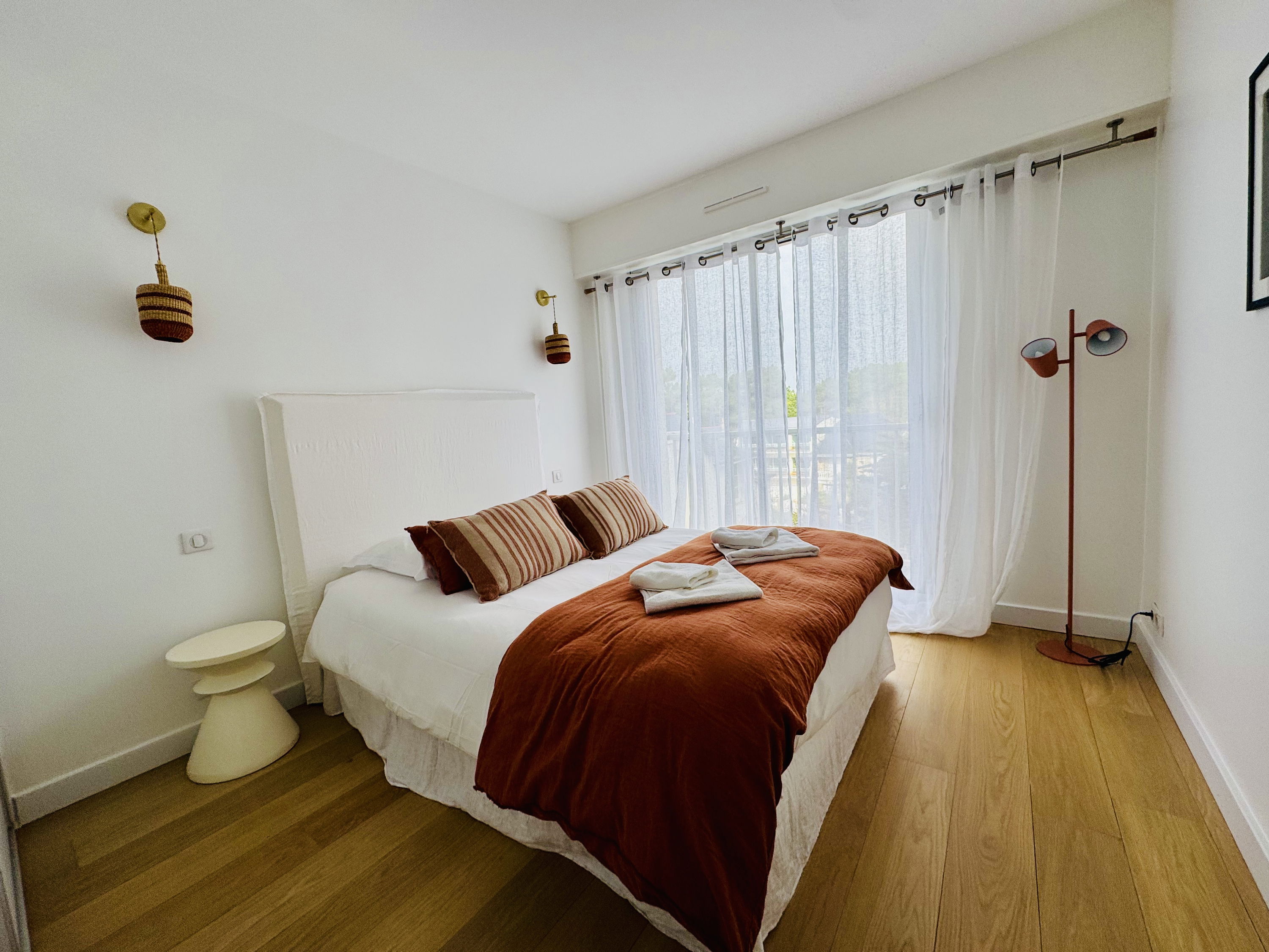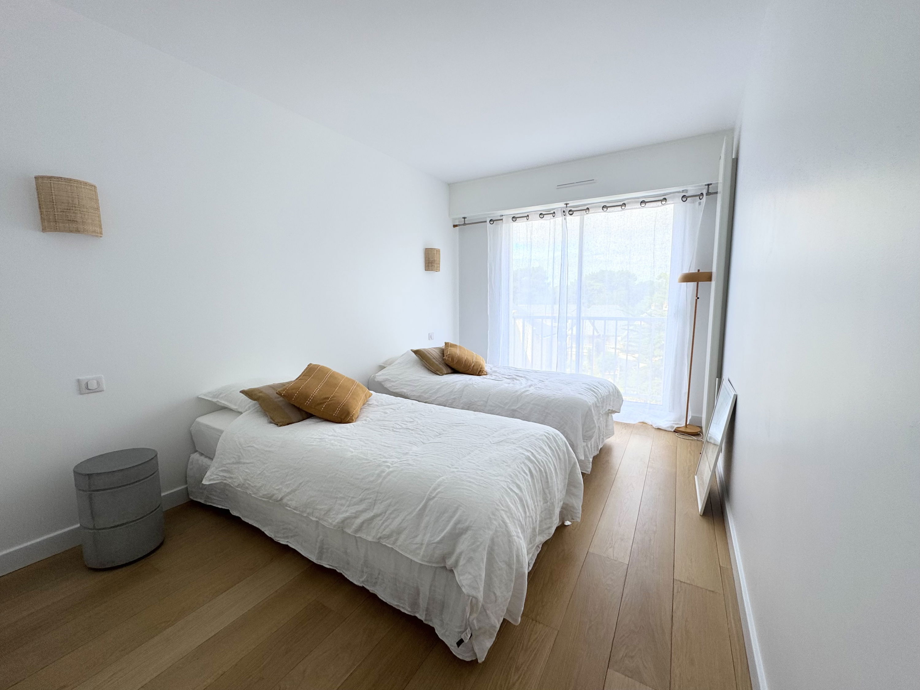 3 chambres (1 lit double 140x200 avec salle d'eau attenante + TV / 1 lit double 140x200 / 2 lits simples 90x200), toutes avec parquet et placards