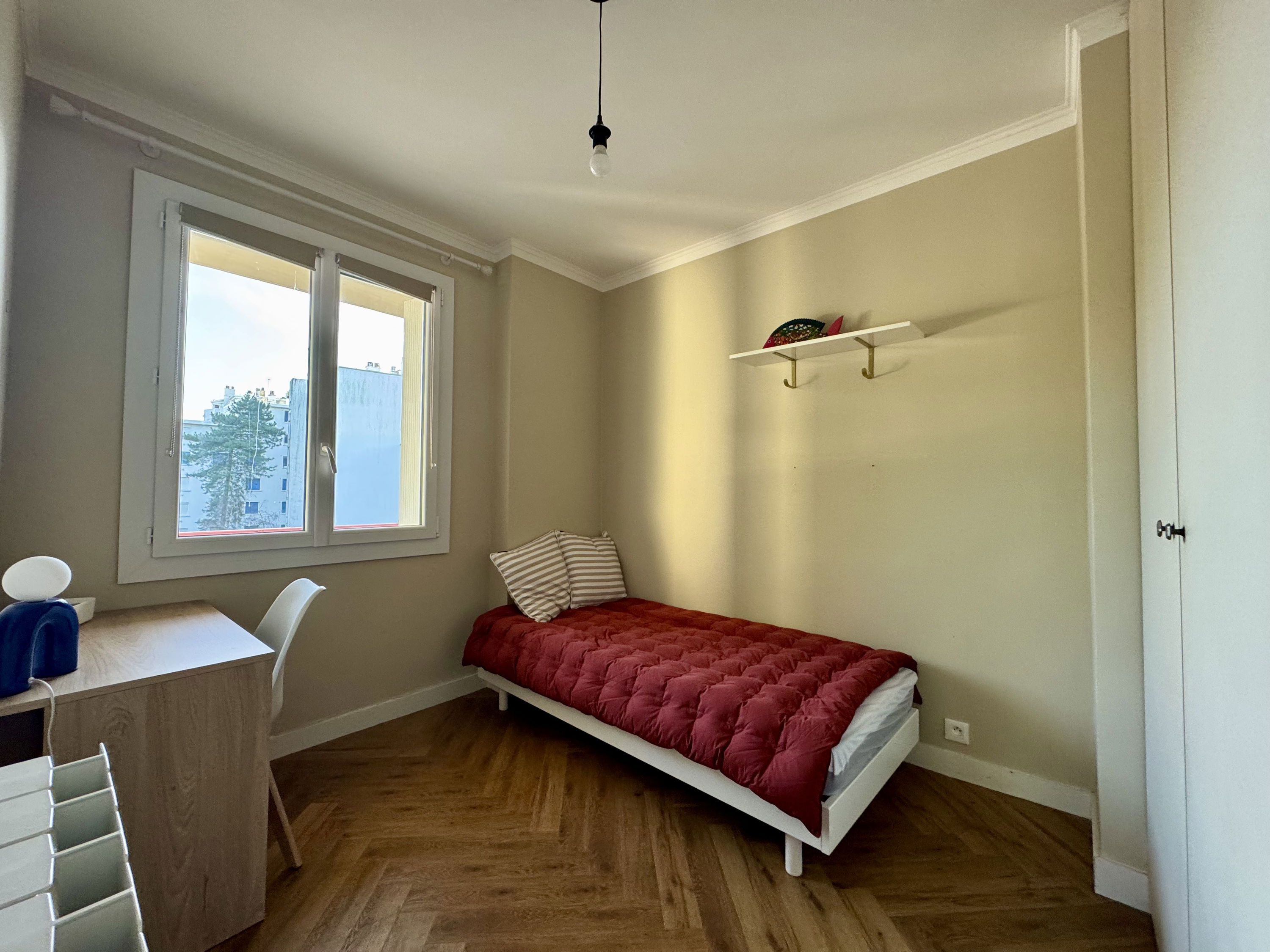 Chambre 2 : un lit simple 80×190, placard/penderie et coin bureau, parfait pour télétravail ou devoirs