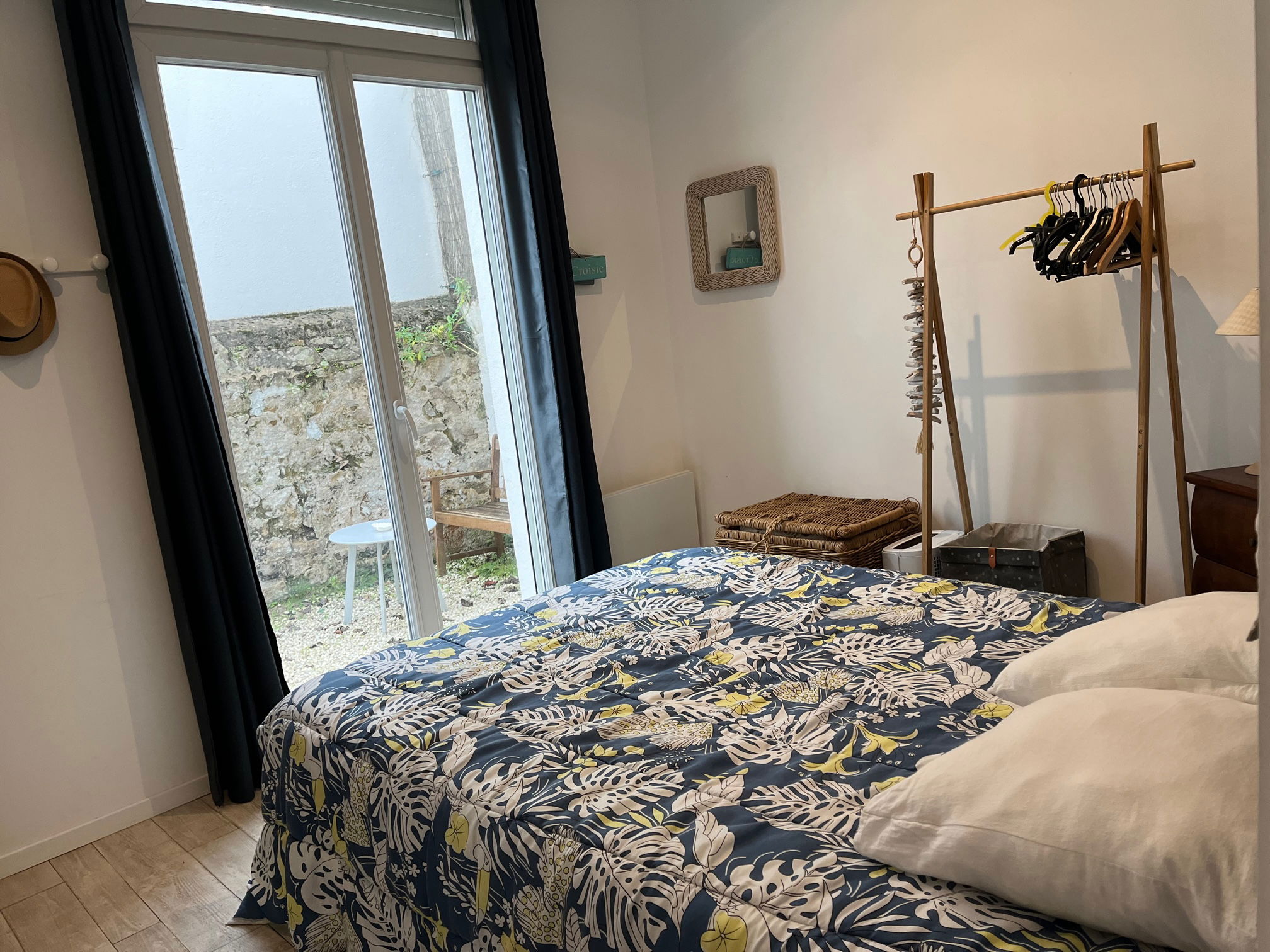 Il comprend une entrée sur la pièce de vie (canapé lit 160/200 + TV) - Espace cuisine et repas avec plaque induction, hotte, lave-vaisselle, four, réfrigérateur/freezer, cafetière Krups, grille-pain, bouilloire - Chambre ouverte sur jolie petite cours ensoleillée (lit 140/190, penderie) - WC indépendant - Salle de douche avec sèche-serviette.