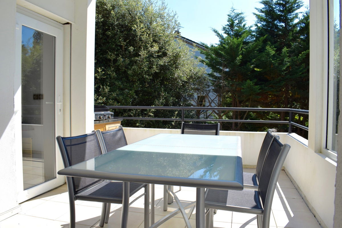 Elle comprend une entrée sur belle pièce de vie de 45 m² traversante et ouverte sur terrasse Sud/Ouest - Cuisine indépendante (Réfrigérateur/Cong. - Four - 3 feux gaz - Hotte - Micro-Ondes - Lave-vaisselle - Nespresso) avec accès sur l'extérieur et la terrasse.