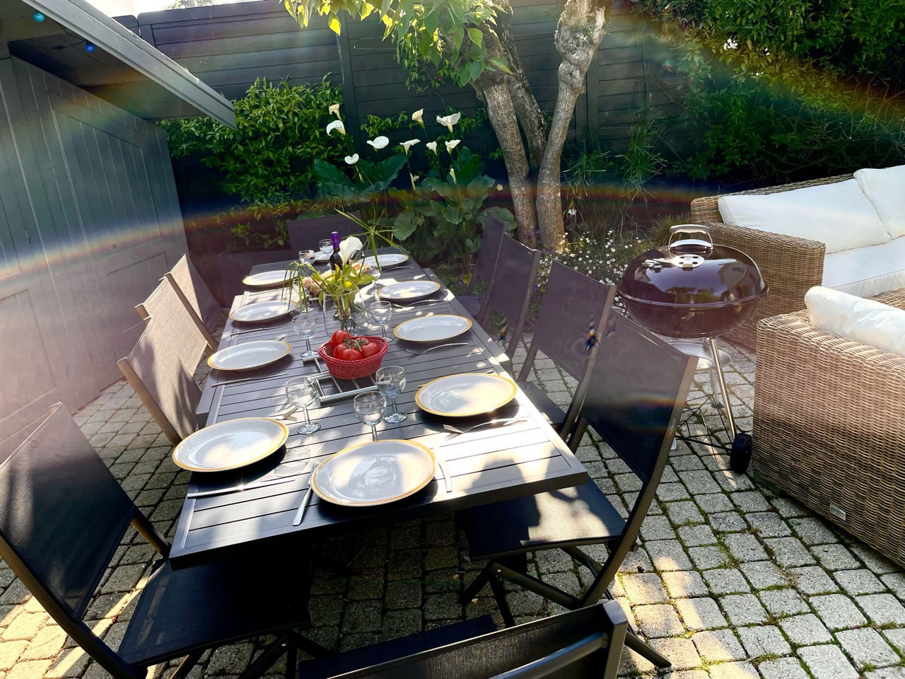 Jolie jardin clos avec mobilier et barbecue Weber charbon - Internet wifi - Garage + Stationnement devant la villa.