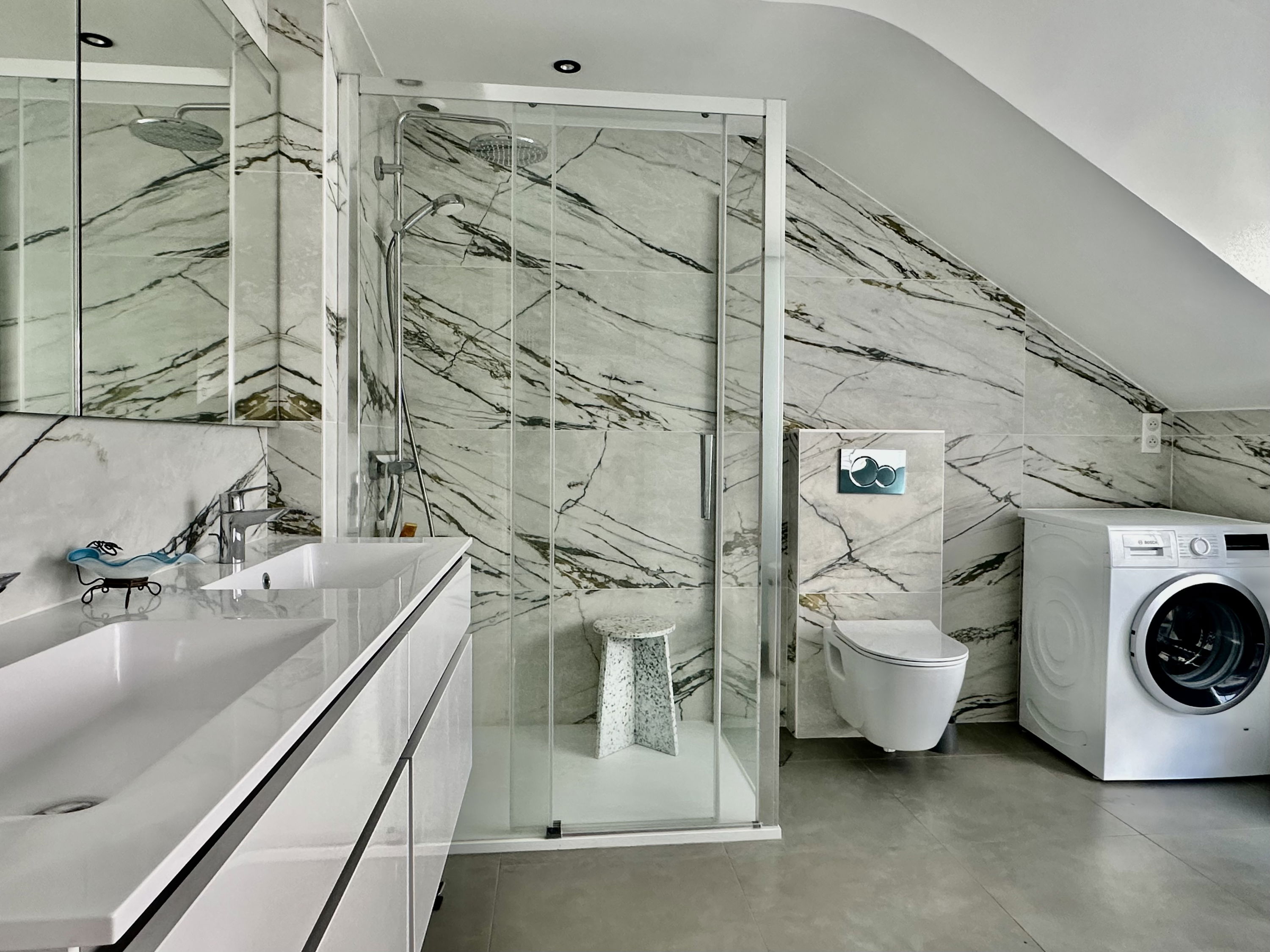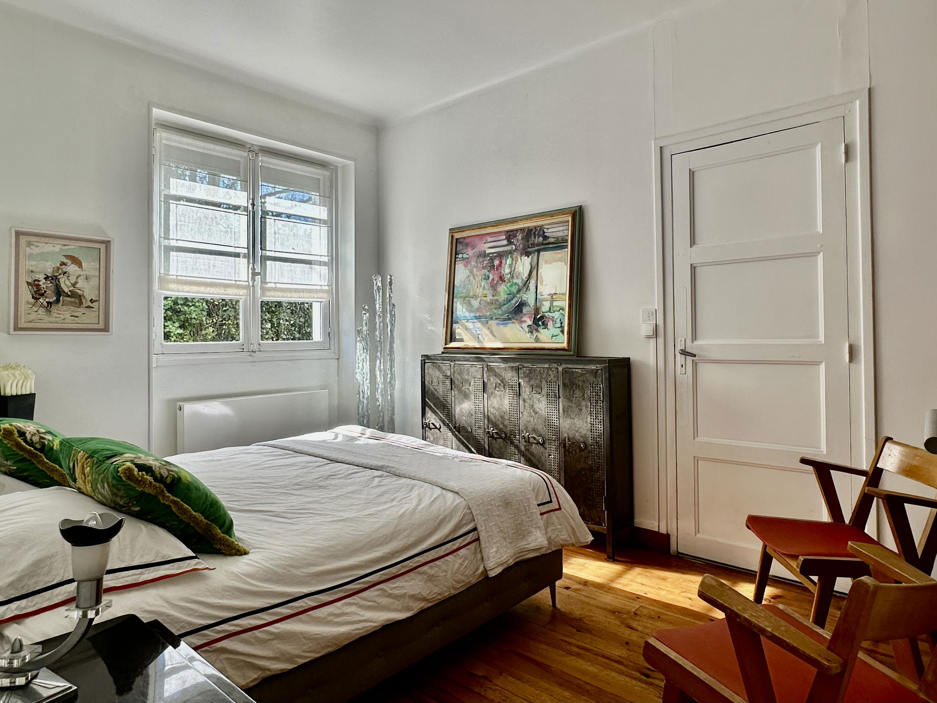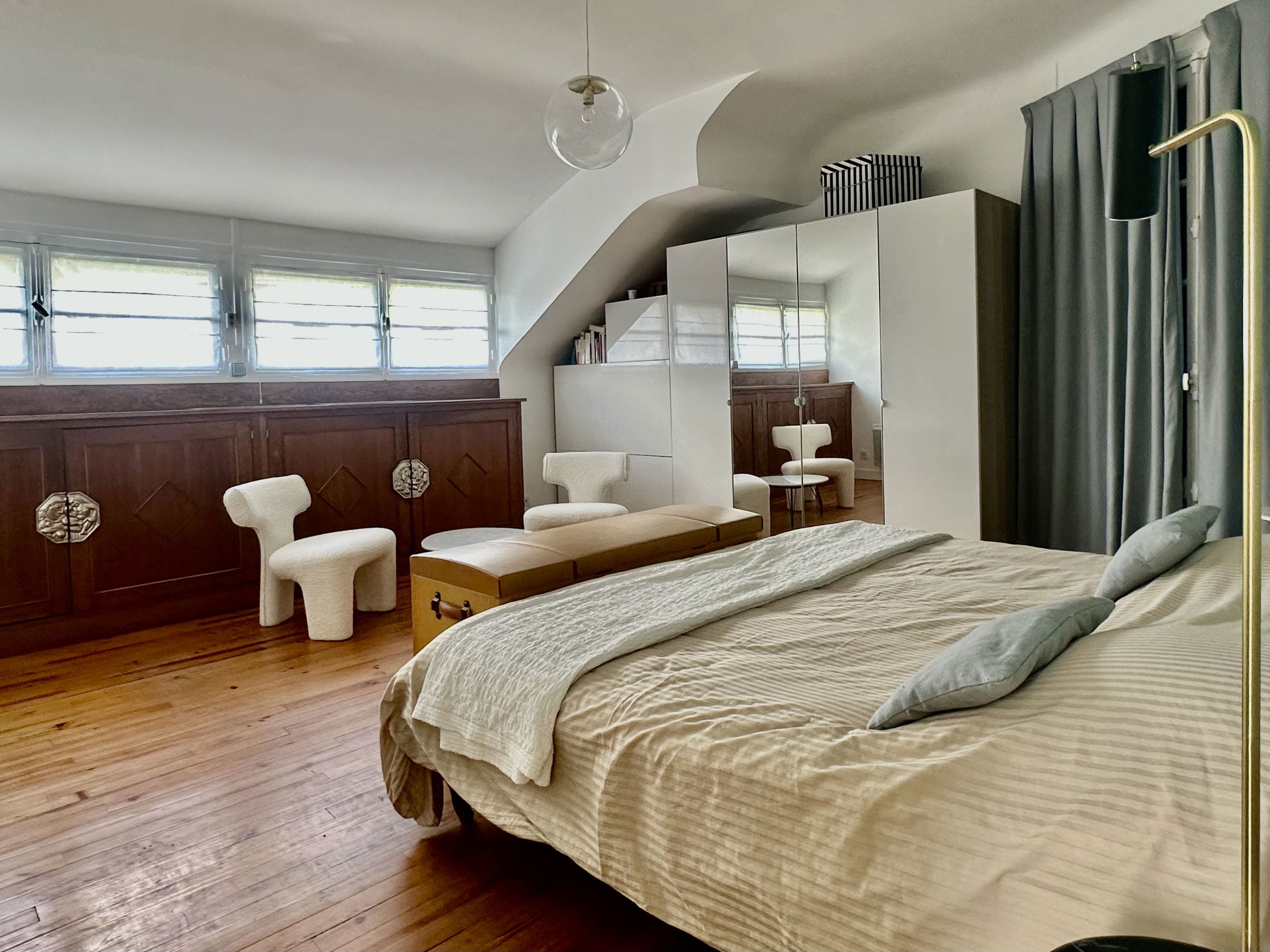 A l'étage : 3 chambres dont une magnifique suite parentale avec une superbe salle de douche en marbre et dressing refait à neuf. Deux autres chambres donnant sur leur terrasse respective, une salle de bains (baignoire, toilette). Literie de très bonne qualité.