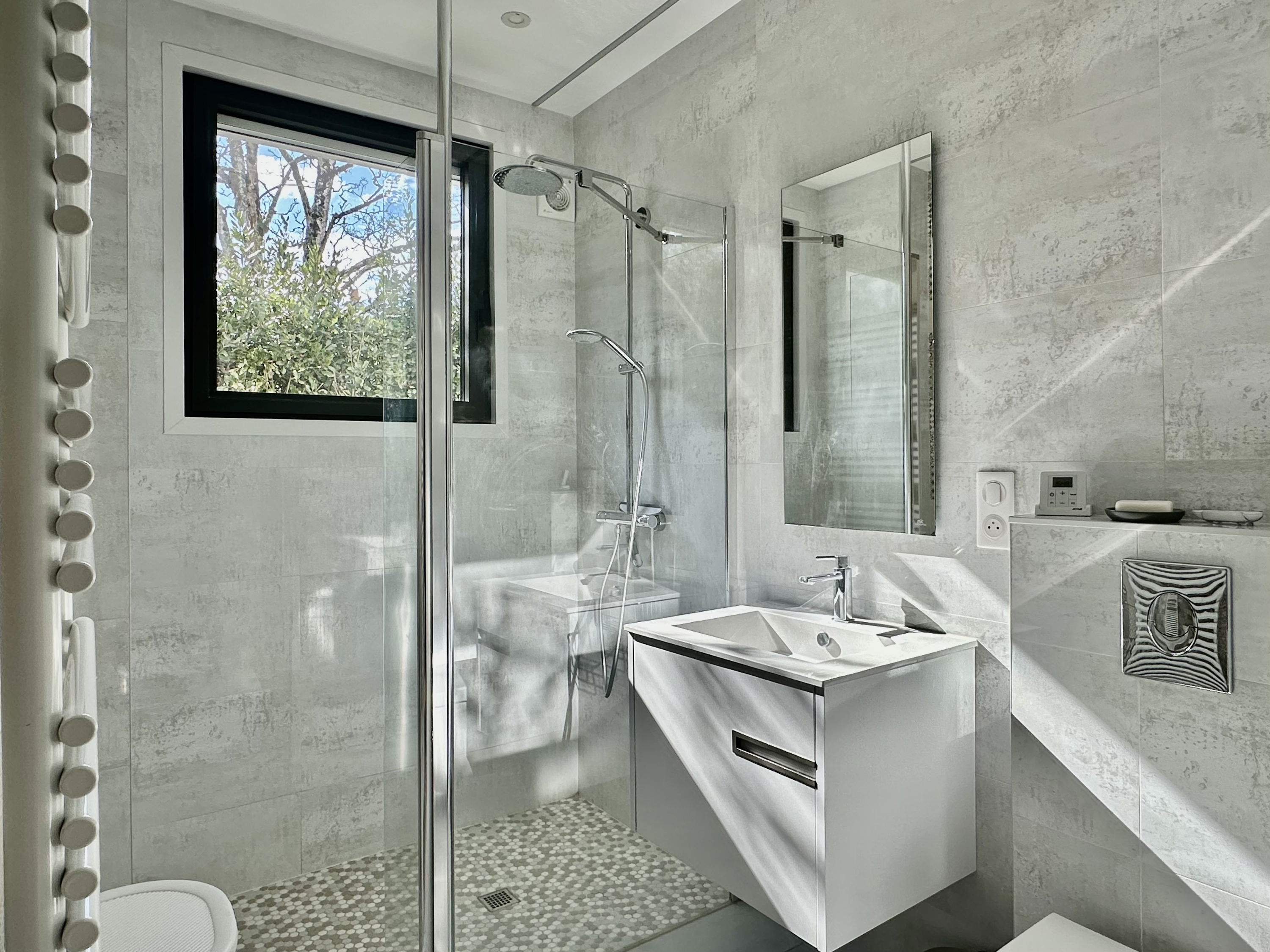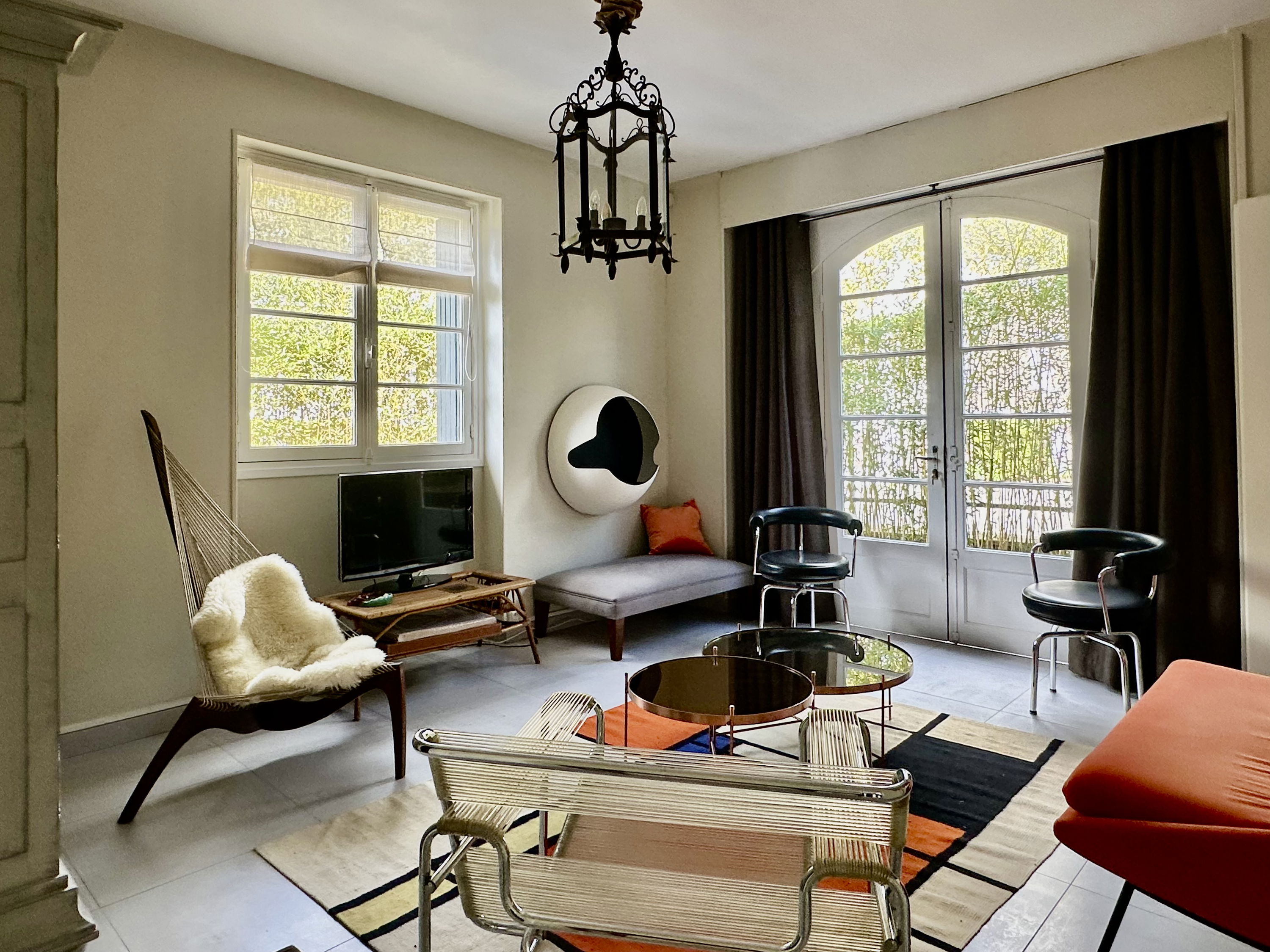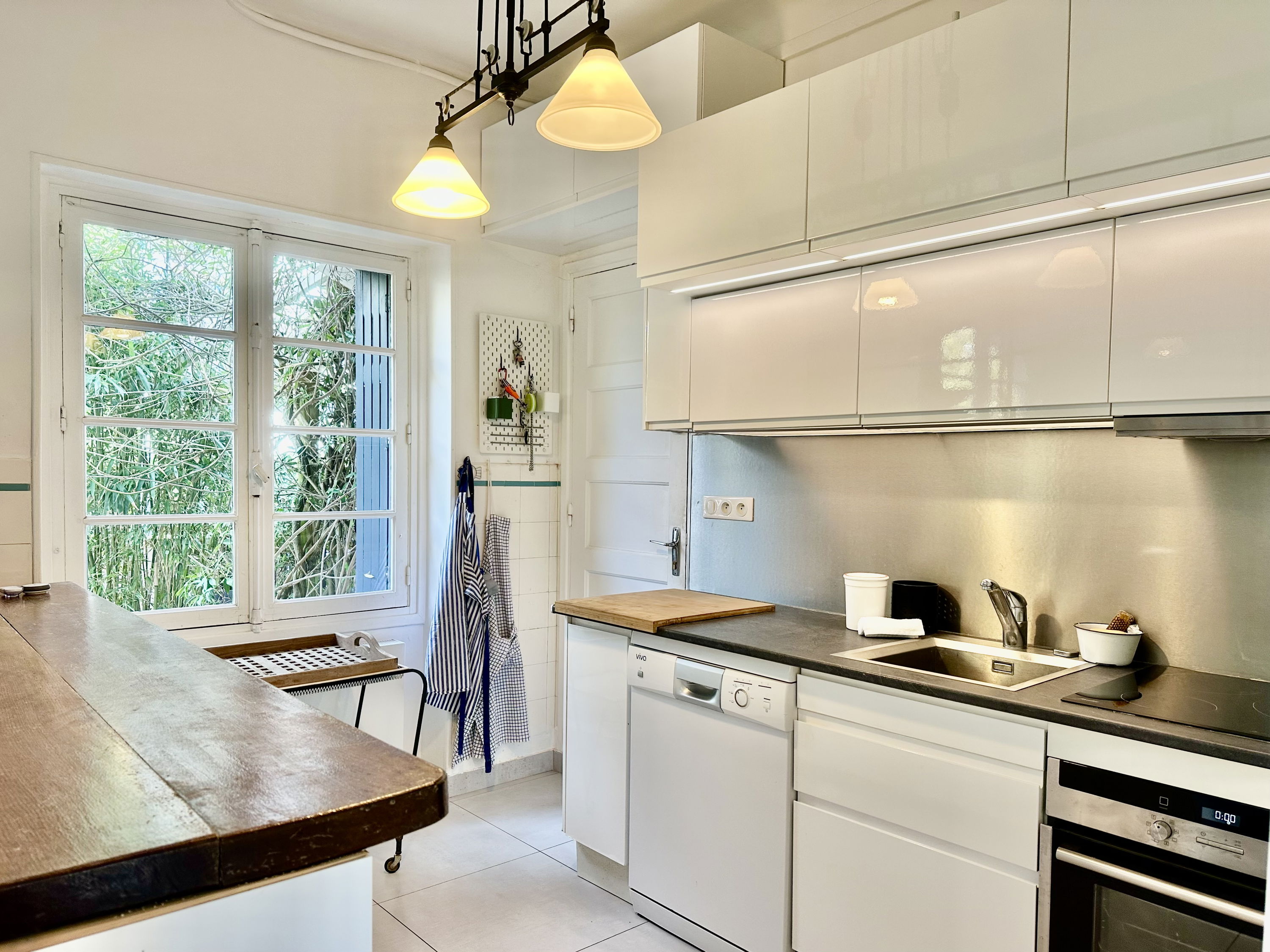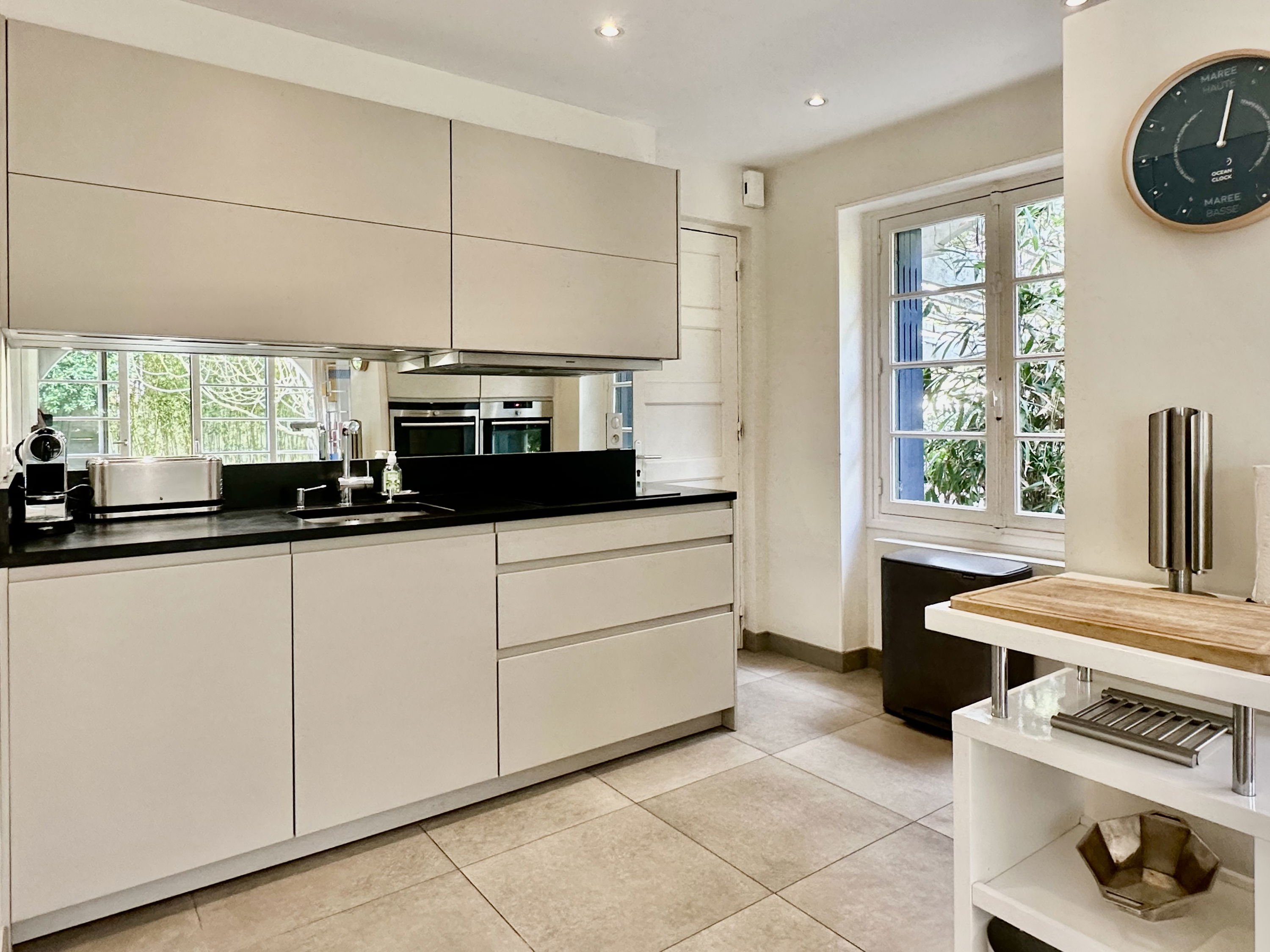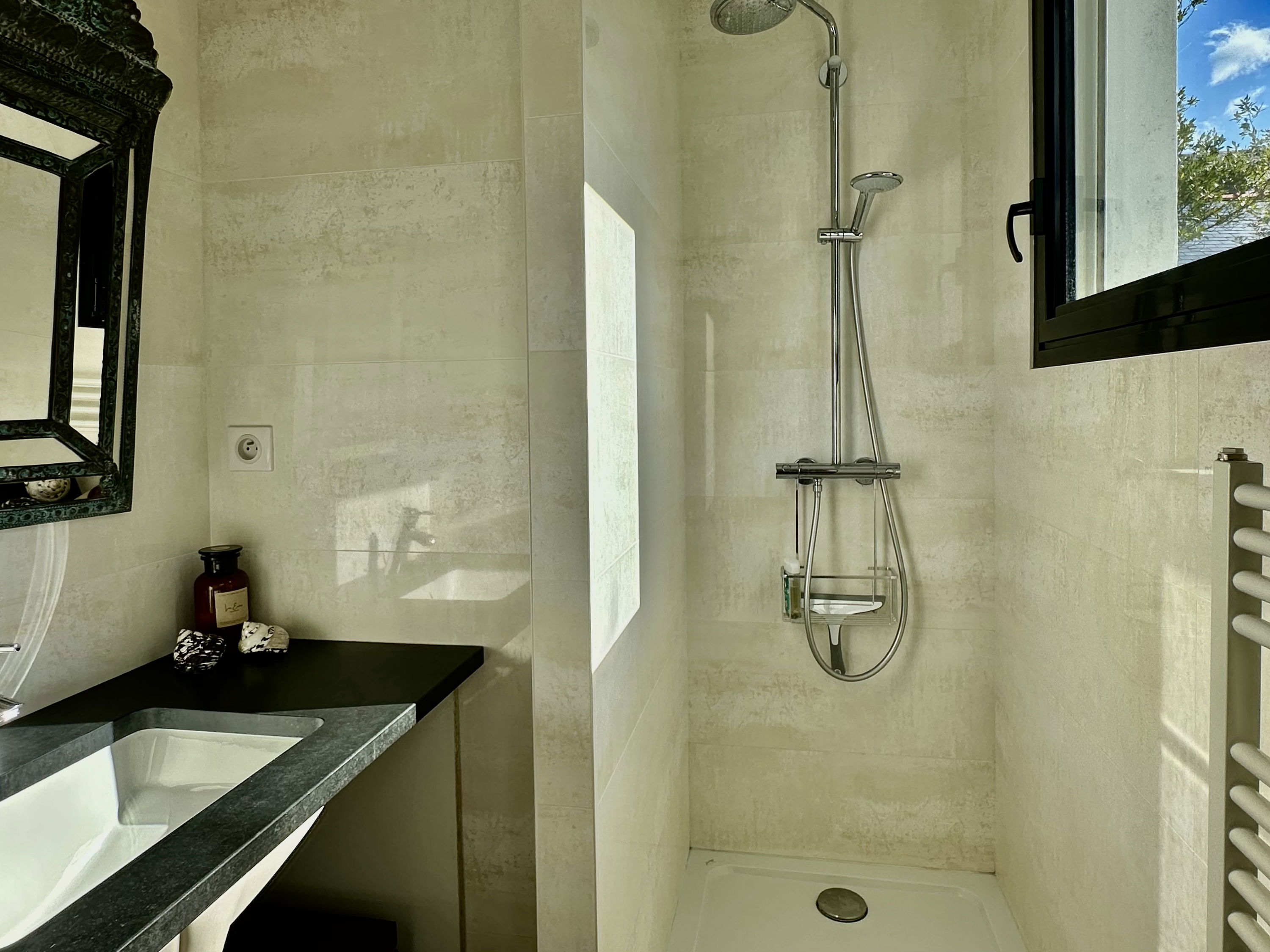 Au rez-de-chaussée : Hall d'entrée - 1ère Aile : Cuisine A/E( réfrigérateur, four, micro-ondes, lave-vaisselle, lave-linge, plaques à induction etc....) donnant sur une belle pièce de vie baignée de lumière donnant sur une belle terrasse équipée (exposée Sud), une suite parentale (salle d'eau avec douche à l'italienne) et un toilette indépendant. 2ème aile : un salon paisible et ensoleillé, très cocooning où vous pourrez vous confrontez à une partie d'échec, une cuisine indépendante entièrement aménagée et équipée (four, micro-ondes, réfrigérateur, plaques à induction, lave-linge et sèche-linge), deux chambres : la première équipée de deux lits superposés de 90x190cm, la seconde équipée d'un lit de 160x190cm et une salle d'eau (douche à l'italienne) avec un toilette. Une très jolie terrasse paisible et arborée à l'abri des regards.