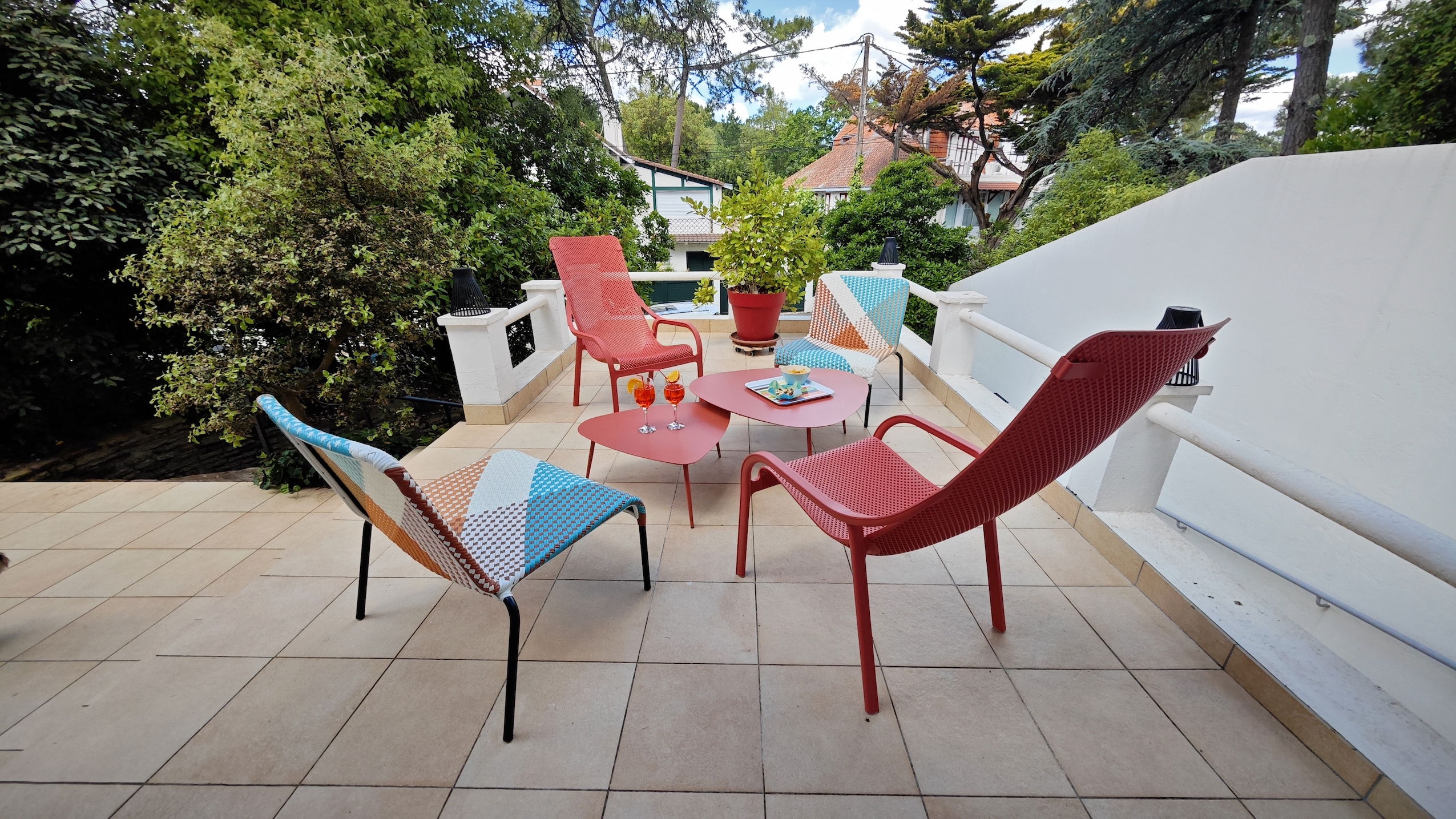 Dans le quartier de la Piscine Aquabaule, des tennis Garden et à 500 m de la plage, vous passerez d'agréable vacances dans cette villa style basque édifiée dans un écrin de verdure.