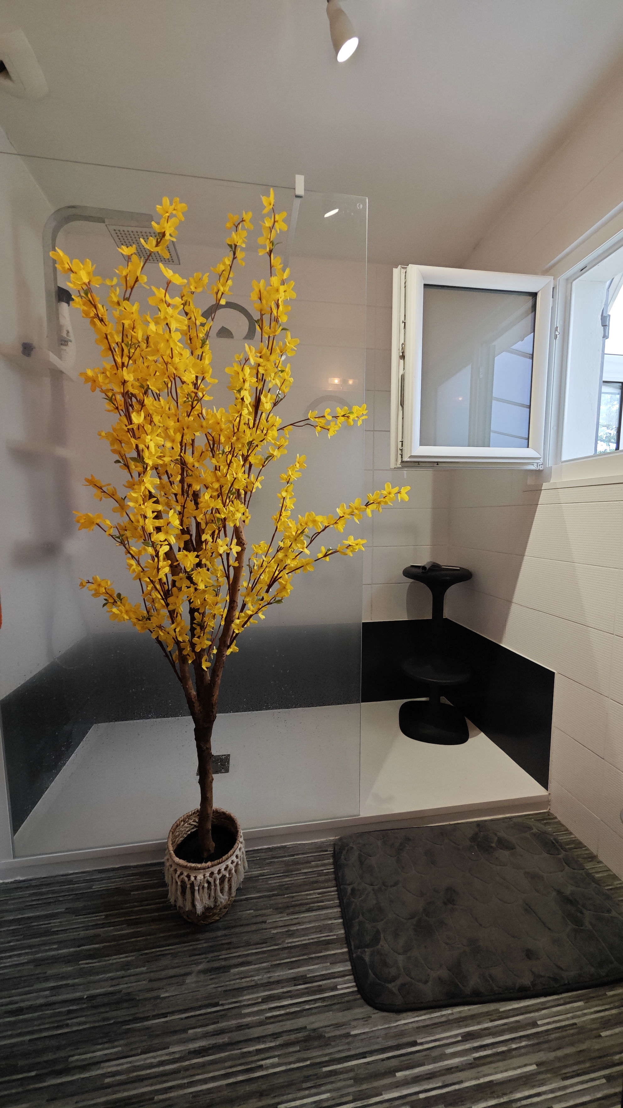 Studio/Chambre n°3 indépendante (disponible de mai à septembre) comprenant Pièce avec canapé lit 160/190 + 2 lits superposés d'enfants - SDE + WC avec Lave-linge - Sèche-linge. Parking devant la villa.