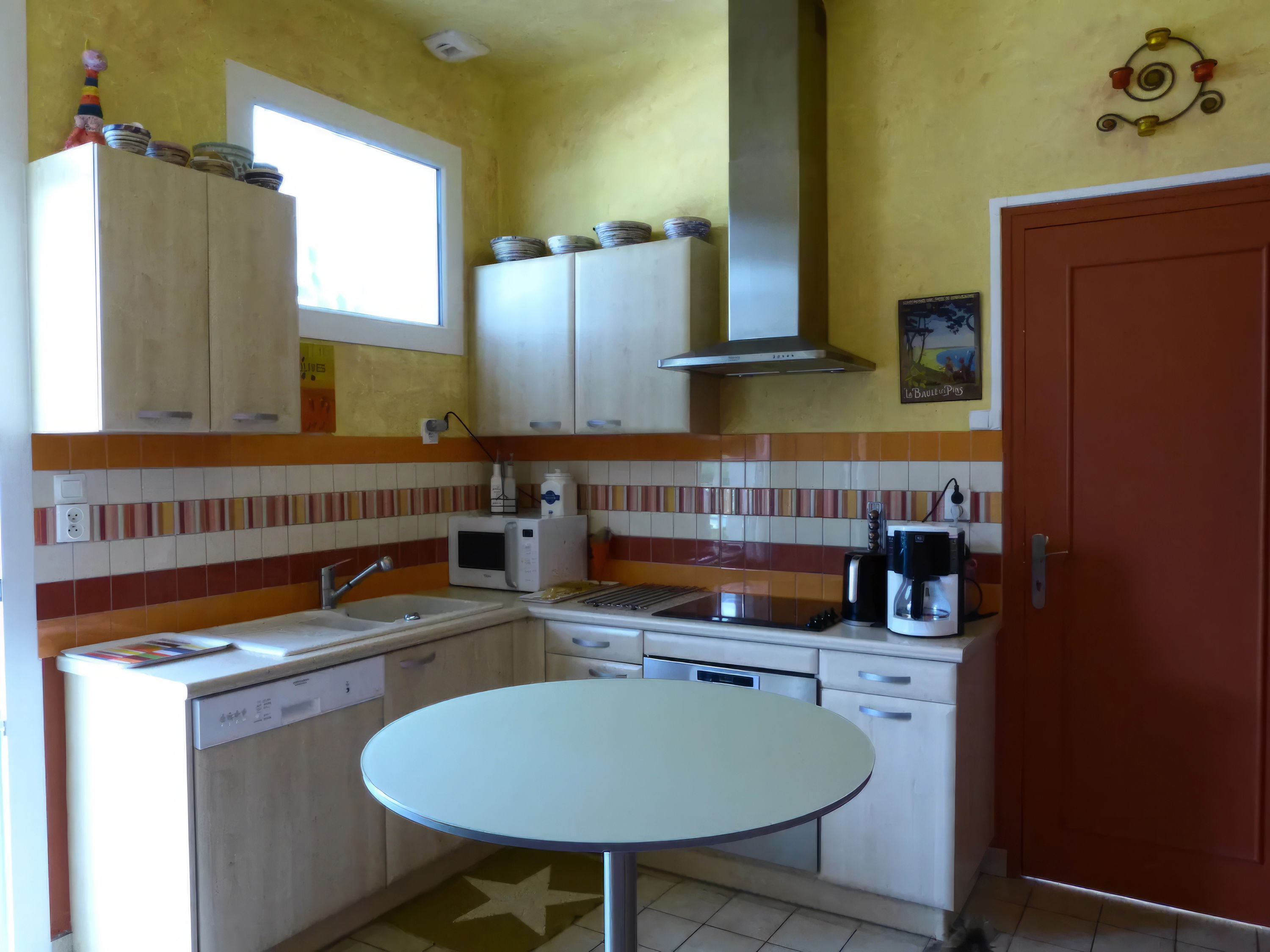 La villa principale comprend une entrée sur pièce de vie traversante Sud/Ouest et Nord/Est avec canapé lit 160/200, TV écran plat, Lecteur DVD, Poile à granulés pour l'hiver - Accès terrasse et jardin - Cuisine indépendante (Plaques élec. - Hotte - Micro-ondes - Cafetière Nespresso - Four - Lave-vaisselle) ouverte sur véranda aspectant le jardin (salon de repos) - Chambre n°1 avec lit 160/200 - Chambre n°2 avec 2 lits 90/190 et accès terrasse -