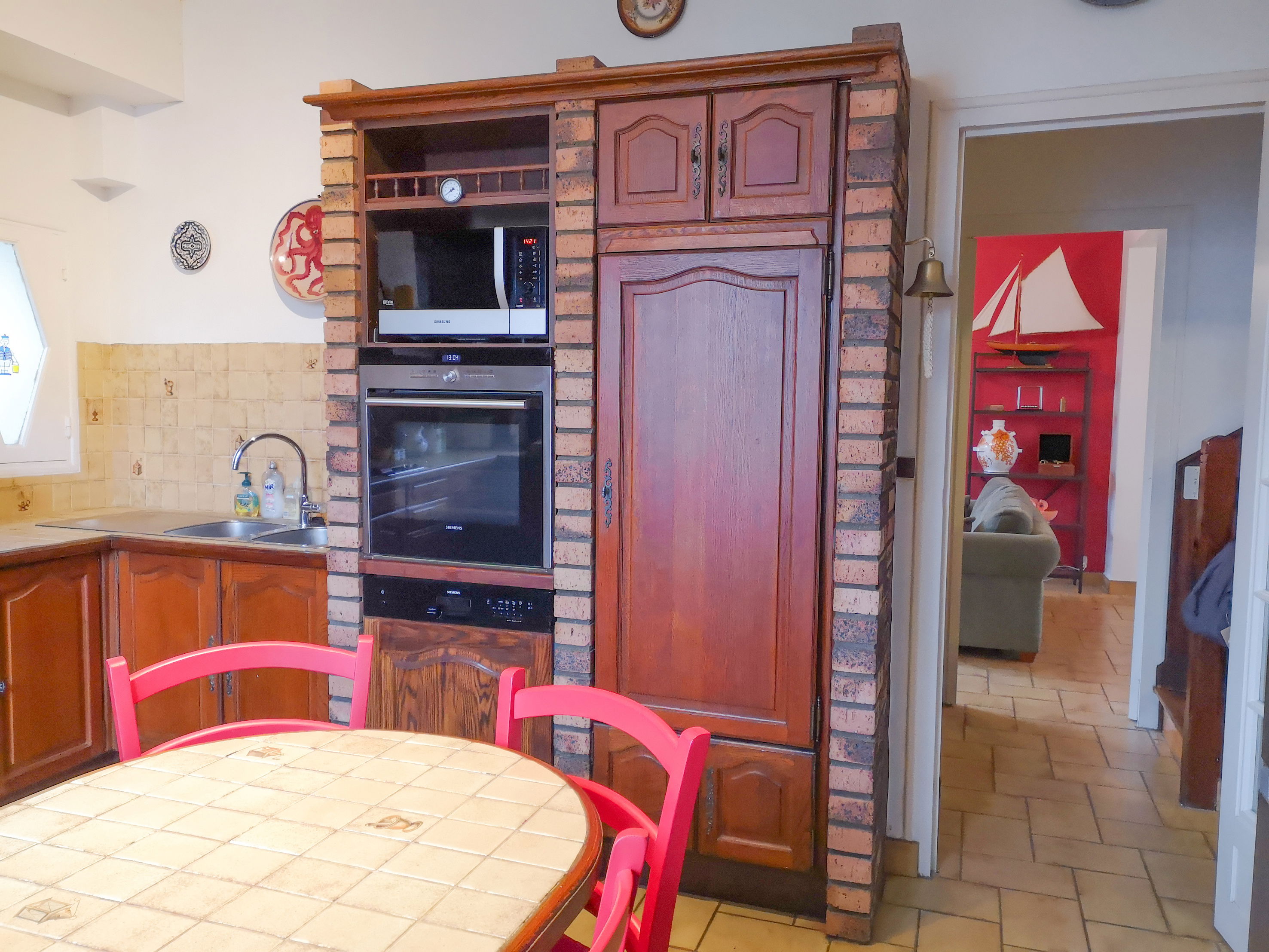 Entrée - Pièce de vie avec cheminée et Tv écran plat (lecteur DVD) - Véranda avec grande table à manger - Grande cuisine indépendante avec plaque gaz, grille, hotte, cafetière Senseo, micro-ondes multifonction, four vapeur, lave-vaisselle, réfrigérateur/congélateur - Chambre n°1 avec canapé lit 140/190 + placard/penderie + salle de douche avec sèche-serviette - Wc lave-main.