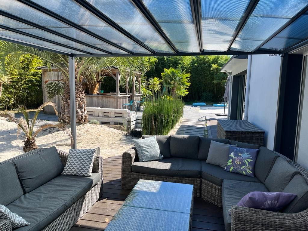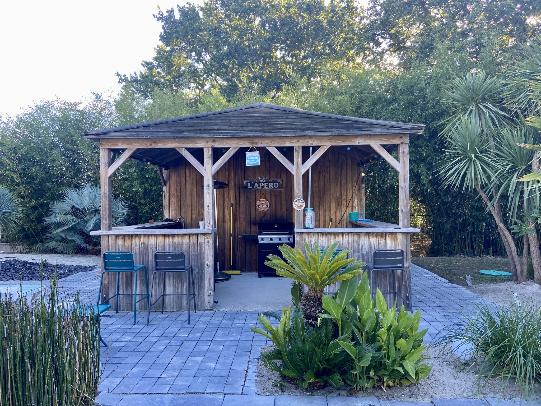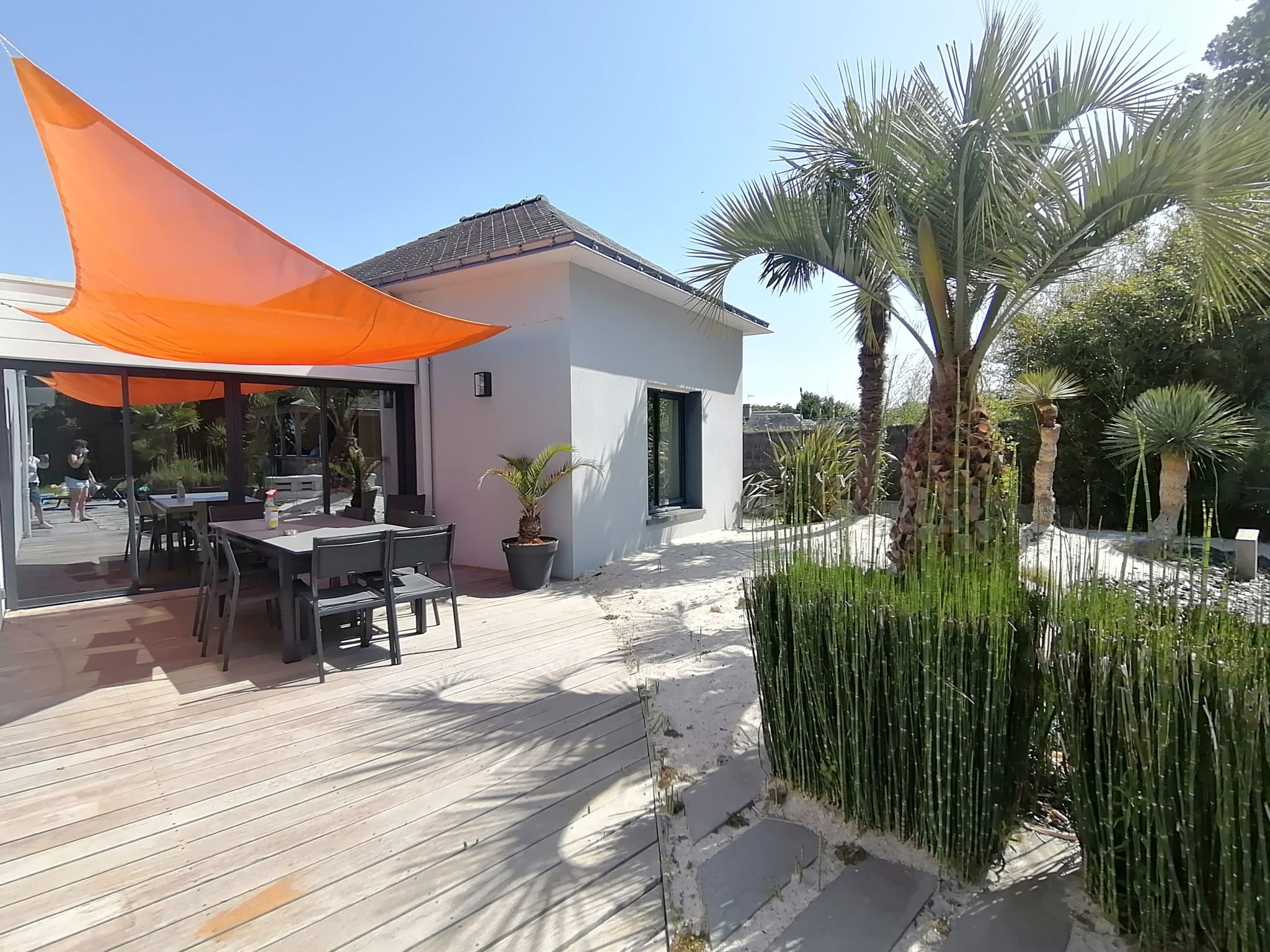 Jardin clos paysagé avec: Piscine - Grande terrasse avec Cuisine d'été (Lave verre - Nespresso - Cave à vin évier - Réfrigérateur et BBQ gaz - Friteuse) - Pool house (douche et WC).