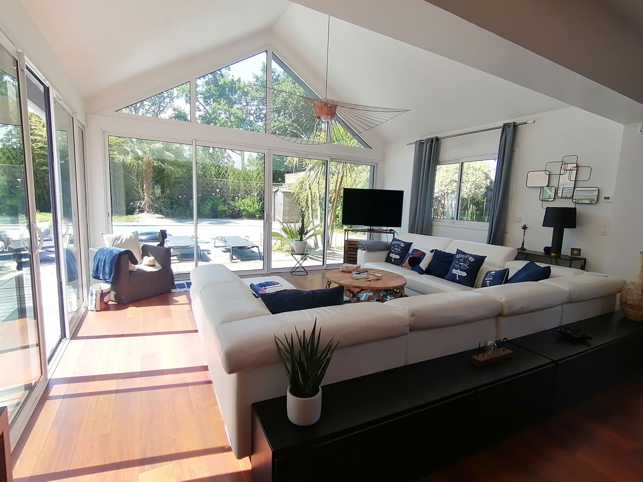 - Pièce de vie très lumineuse avec vue sur jardin et piscine